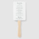 Ventilador de la mano del programa de bodas de estilo clásico con palabras de acento en una elegante tipografía caligráfica. Todo el texto es verde sobre un fondo blanco y puede cambiarse a cualquier color que desee haciendo clic en el botón "personalizar". Estos fans del programa de bodas son perfectos para un boda formal.
