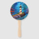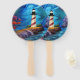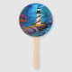 Hermoso faro de rayas rojas y blancas sobre un rocoso en el exterior rodeado de flores y agua azul/cielo Arte de IA creado por minx267