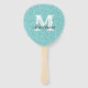 Abanico Purpurina Aqua Monograma Hand Fan