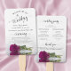 Estos hermosos aficionados al programa de bodas son elegantes, románticos, elegantes y de buen gusto. El diseño se compone de un único rosa morado, magenta o de color berry de larga talla que se refleja en un estanque de agua con olas y ondas. La tipografía incluye caligrafía de escritura negra y encaje, y hay espacio para detalles de la ceremonia, la fiesta de las novias y un breve agradecimiento.