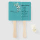These teal wedding program fans feature a vibrant teal background adorned with a romantic watercolor floral cluster at the top, highlighting your names and wedding date for a stylish keepsake. Attached to a wooden handle, they are perfect for outdoor or warm‑weather ceremonies, keeping guests cool while coordinating beautifully with your teal floral invitation suite.
