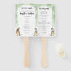 Relájese con este divertido fan del programa del día de bodas con la temática de los dinosaurios con divertidas novias de dinosaurio y follaje eucaliptos de color y aroma. Fácil de personalizar con los nombres de novios y novios, la fecha del boda y todos los detalles de la ceremonia del día de la boda en el moderno guión de tipografía. Ilustraciones divertidos de dino de T-Rex y groom dino en tonos marrones con vegetación botánica acuática en tonos verdes. Obra de arte original única en dino de la artista Catherine Sweetman
