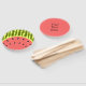 Diseño con un toque retro inspirado en una sandía con semillas negras sobre un fondo rosado y rayas verdes y negras. Un diseño de personalizable para que puedas personalizar con tu propio texto, imágenes e ideas. Imagen original de arte digital.