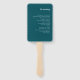 Estos elegantes y minimalistas aficionados al programa de bodas presentan una tipografía de escritura moderna en blanco y un texto limpio y sans serif para un diseño verde azulado profundo, sencillo y elegante que le encantará. La parte posterior del ventilador contiene su orden de ceremonia u otra información de su elección.