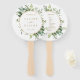 Este fan de la mano del programa de bodas presenta eucalipto pintado de color agua, hojas verdes con un marco redondo dorado. Para una personalización más avanzada de este diseño, haga clic en el enlace "Personalizar más adelante". También están disponibles los elementos coincidentes.