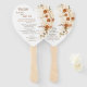 Comparte tus detalles especiales del día con elegancia usando este fan del programa de bodas en forma de corazón. Con un diseño rústico floral en tonos cálidos, este único ventilador de mano es práctico y romántico. Perfecto para bodas al aire libre, ceremonias de verano o celebraciones en el jardín, mantiene a los huéspedes al fresco mientras exhiben su programa de ceremonias y su fiesta de bodas. Personaliza con tus nombres, fechas y detalles de bodas para un mantenimiento único que complemente los temas rústicos, boho o románticos bodas.