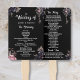 Mantente fresco y elegante durante tu ceremonia con nuestro "Hand Fan del programa de bodas góticas!" Disfrute de la elegancia de las flores oscuras y de la estética gótica mientras mantiene a sus huéspedes informados y cómodos. Solicite ahora un toque único e inolvidable para su día especial.