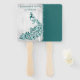 Personalice un exclusivo favor de boda para los huéspedes con un Verde azulado abanico de palo de hoja de pavo real. El diseño del ventilador de mano presenta un fondo gris claro con un pavo real verde azulado vibrante con un adorno de vid de hoja. Personaliza con los nombres del novio y la novia junto con la fecha del boda. También hay material de boda adicional disponible con este diseño. ¿Necesita ayuda con la personalización? Por favor, contáctame y elaboraré la redacción y los detalles para adaptarlos a su satisfacción.