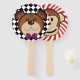 Estos adorables fans tienen antecedentes inspirados en el circo vintage, con un oso en la parte delantera y un mono en la parte trasera.