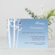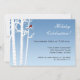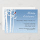 Una invitación preciosa para cualquier acontecimiento del invierno o celebración de días festivos. Árboles de abedul de blanco de las características del diseño con el cardenal rojo en fondo azul con los copos de nieve que caen.