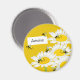 Abeja en imán redondo de flores - fondo amarillo
