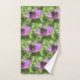 Características determinadas de esta toalla una abeja que recolecta el néctar de un flor púrpura del cardo. Busque los accesorios a juego del cuarto de baño.