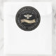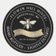 Black Label con Vintage French Bee presenta un doble borde blanco que rodea su nombre y ubicación de la agenda. El nombre del aprendiz se muestra en texto curvado en la parte superior y la ciudad y el pueblo del apicultor están escritos en texto curvado bajo un nombre colmenar. Hay un delicado borde blanco y tenue cerca del perímetro exterior de la etiqueta. Las palabras "PURE RAW HONEY" están escritas en un cartel de gradiente dorado ondulado en el centro de la etiqueta (y se puede borrar y sustituir la palabra "HONEY" por "desocultando" el icono del globo ocular a la izquierda de la palabra HONEY en la línea 1 en el PANEL DISEÑO)