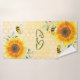 Fondo amarillo y blanco con un patrón de peine de miel. Decorada con girasoles rústicos de color agua amarillos y naranjas y abejas felices con burbujas. Personalice y agregue sus propias iniciales de monograma. Letras verdes.