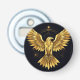 Una imagen impresionante de un águila geométrica dorada, diseñada intrincadamente con alas extendidas, posicionada contra un fondo oscuro abstracto con patrones místicos. Ideal para temas de fuerza, poder y libertad.