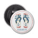 Este bonito abrebotellas redondas costeras presenta un par de chanclas en tonos suaves de color rojo, blanco y azul con anclas náuticas. Personaliza con tu elección de nombre o mensaje especial. Perfecto para las fiestas personalizadas.