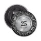 Feliz reloj de personalizable del 25 aniversario del boda con un marco ornamental real de plata sobre fondo negro. Esa es una manera genial de decir Feliz boda Plata a tus padres.