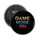 El diseño presenta la frase "Modo de juego activado" en una letra negrita, sans-serif, representada en una vibrante paleta de colores elegantes. Las palabras están dispuestas en una composición dinámica y diagonal, creando un sentido de energía y emoción.