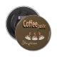 Apertura de botellas de botón, titulado Pasta de café, un café gracioso Copiar Pegar un pozo, con una copia de tres tazas de café y una solicitud de "sí por favor" en el fondo, fondo marrón
