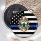 Apertura de botellas del Departamento de Policía de la Línea Azul delgada - Bandera estadounidense con colores de bandera de la policía, diseño moderno negro y azul. Personalizar con el logo de su departamento, y personalizar con el nombre de los oficiales de policía. Este abridor personalizado de botellas para la aplicación de la ley es perfecto para los departamentos de policía y los oficiales encargados de hacer cumplir la ley, ideas promocionales o regalos a los oficiales de policía. DERECHOS RESERVADOS © 2020 Judy Burrows, Black Dog Art - Todos los derechos reservados. Apertura de botellas de Personalizado del Departamento de Policía