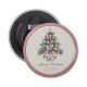 Este abridor de botellas de vacaciones de perrito cuenta con un hermoso árbol de Navidad rosa y verde en una decorativa olla Chinoiserie. Personalice el mensaje con su elección de texto especial. ¡Excelente para las bolsas de regalo!