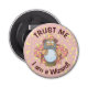 Viejo mago con capa rosa mirando la bola mágica de cristal.