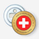 La bandera de Suiza se inserta en un anillo de oro falso redondeado. La palabra "Suiza" aparece en la parte superior e inferior del diseño y tiene un efecto apretado. El par de tres estrellas decorativas se han diseñado con un efecto prensado.