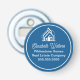 These professional realtor bottle openers are custom made with your real estate company name under the modern white cursive typography and house image. These elegant blue realty business promotional item labels feature a house logo image for home builder or realty agent company marketing.