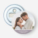 Estos adorables abridores de botellas con forma de botón para ducha de parejas con un borde inferior grisáceo púrpura son perfectos para usar en la ducha de parejas. Elija una foto que le guste que refleje su amor mutuo. ¡Tienes el control sobre la imagen que usas para establecer el tono de tu día especial! Personalícelos con su foto, nombres y fecha. Son un favor muy divertido para los invitados.