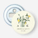 Abrebotellas elegante y rústico para su boda con fuente serif clásica y limones cítricos de verano en acuarela con vegetación en un frasco con sus monogramas. Hace un gran favor o como regalo.