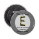 Personalice este dispositivo de apertura de frascos que incluye una letra elegante en monograma E. La gran E inicial presenta colores dorados y negros en un estilo antiguo vintage. Esta carta aparece en un óvalo gris claro. El nombre de la novia y del novio y la fecha de boda aparecen al final de este imán redondo junto con las palabras "gracias". Personaliza rápida y fácilmente para crear un favor de boda para tus invitados.