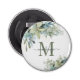 Elegante botella de Monograma Botánico de Eucalyptus con un hermoso eucalipto verde y polvoriento verde y azul polvoriento y tipografía moderna. Fácil de personalizar con su información para un abridor de frascos de bonito. Póngase en contacto con nosotros en cedarandstring@gmail.com si necesita ayuda con el diseño o productos de coincidencia.