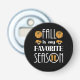 Pequeña calabaza marrón, hongos, ilustraciones botas de lluvia y el texto grande: La caída es mi temporada favorita.