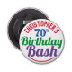 Para celebrar un cumpleaños especial. Diseñado para personas mayores de 70 años. Celebración del 70 aniversario. Bash de cumpleaños. Agregue el nombre y el número. Abriendo botellas con botón de recuerdo de fiesta de cumpleaños.