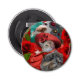 Princesa Tatus :" Fantástico! Este gorra es correcto para el almuerzo de los Navidades..." Pigeon Bilder: "Oye Princesa, no te hagas extrañas ideas". La princesa Tatus vistiendo un elegante gorra rojo de moda con una paloma con sombrero de Santa entre bolas de Navidad y adornos. Foto y diseño gráfico digital de Bulgan Lumini (c) Princesa Tatus y sus gorras famosos."