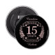 Un diseño para celebrar los 15 años de matrimonio. Este diseño tiene un diseño de laurel de color rosa sobre un fondo negro. El cristal es el regalo tradicional para esta ocasión. El texto dice un aniversario de cristal de 15 años. Un diseño romántico para celebrar tu decimoquinto año de matrimonio. Si quieres ayuda para personalizar este diseño, por favor contacta conmigo, es un botón de preguntar a este diseñador, justo debajo de este texto.