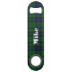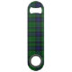 Abridor de botellas de velocidad personalizado realizado en el patrón clásico tartán de clan Abercrombie escocés, azul, verde, negro y blanco. Personaliza el texto en negrita, en el frente, para ti mismo o como una pequeña idea de regalo para él.