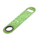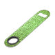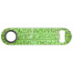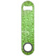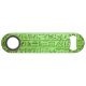 Un abrebotellas verdes con jeroglíficos antiguos grabados en piedra.