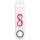Símbolo infinito de flujo continuo de vino tinto vertiendo en vidrio de vidrio sobre fondo blanco.