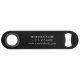 Abridor de botellas negro promocional para su empresa que incluye su logo comercial y el texto de su personalizado en el otro lado. Los colores del fondo y del texto pueden cambiarse a los colores de su marca editando en la herramienta de diseño o contáctanos en juliehortondesigns@gmail.com para obtener ayuda.