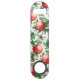 Frutas rojas granadas con patrón de hojas verdes sobre un fondo blanco