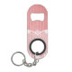 Abrebotellas De Llavero Fondo rosado y blanco con el cordón negro
