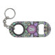 Abridor de botellas monogramado con estampado ornamental art deco en color púrpura y verde pastel.