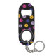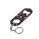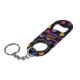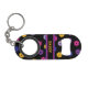 Neon rosa, amarillo y morado sobre el patrón de bola de picnic negro, texto personalizado Apertura de botellas Keychain. Perfecto como regalo para el jugador de pickleball. Personalizable de texto en ambos lados