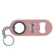 Elegante abrebotellas de cadena de llaves rosa con un monograma de escritura blanca y un nombre de tipografía negra. Personaliza con tu nombre y monograma.