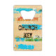 Apertura de botellas que dice "Church Key" en arte de playa meteorizado