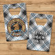 Insignia escudo del Clan Forbes rodeada de una correa y hebilla sobre un fondo escocés. Texto personalizado en ambos lados.