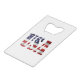 El texto de los Estados Unidos y la Bandera de los Estados Unidos de América, incorporados en cada carta. Productos, regalos y recuerdos del 4 de julio, Día Patriótico de la Independencia. Abrebotellas tipo tarjeta de crédito