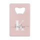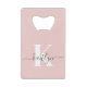 Abrebotellas De Tarjeta De Crédito Elegante Monograma Rubor con guión gris rosado
