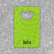 Eleva tu fiesta de despedida de soltera con este abrebotellas personalizado. Con un vibrante diseño de tablero de ajedrez verde neón y texto negro en negrita, este abrebotellas es elegante y funcional. Perfecto para agregar un toque de diversión atrevida, es un accesorio de fiesta esencial para el grupo de damas de honor moderno y cool.